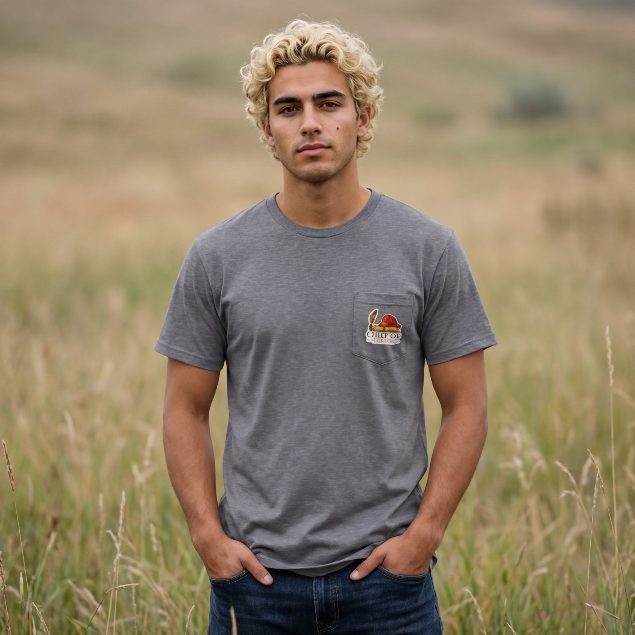 A pocket on the left side of the chest gives the t-shirt a unique look